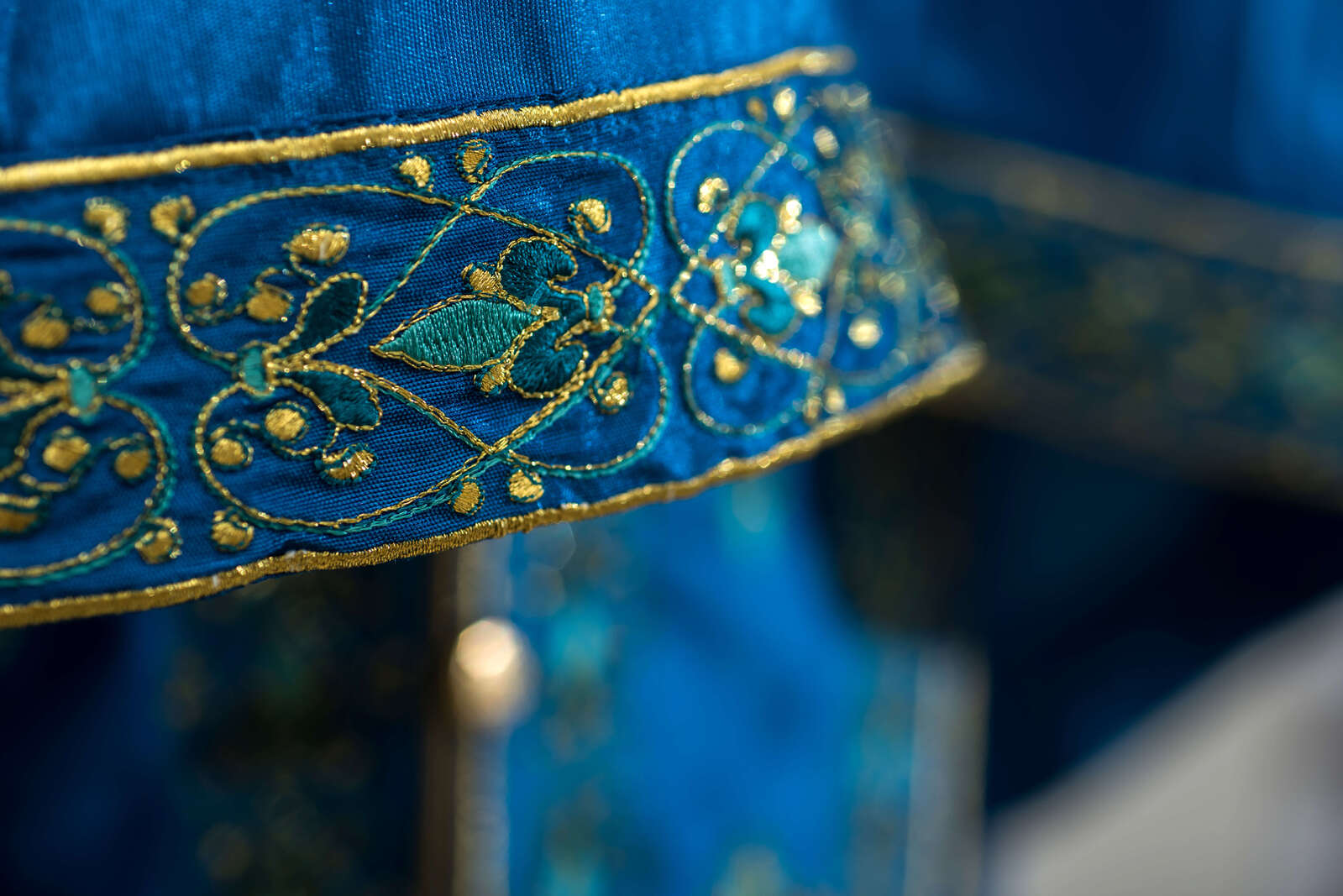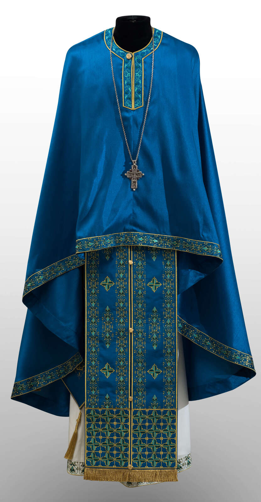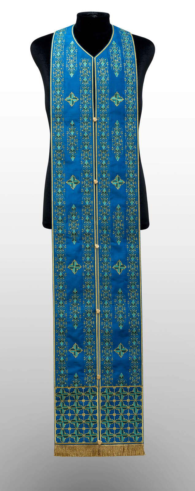 Late Byzantine floral embellishments, characteric of the exquisite 16th century Cretan embroidery workshops, serve as the inspiration for this aptly named set of vestments.